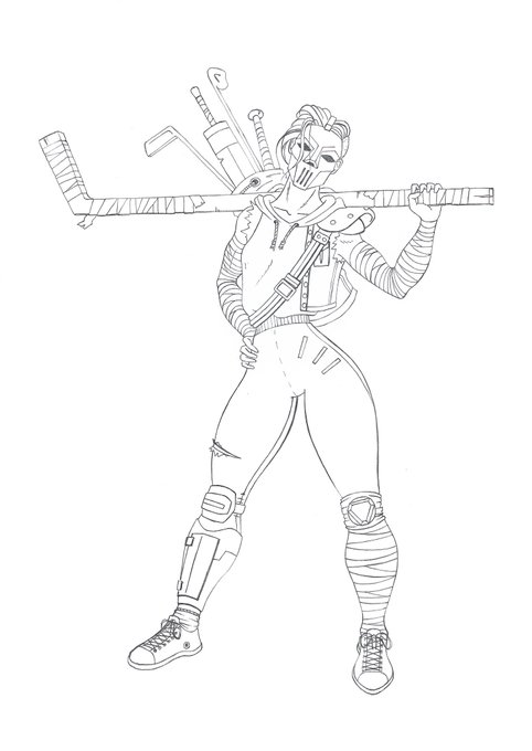 2/2 l'esquisse au dessin final et encré. Tjrs un petit passage par l'utilisation d'un calque pour cleaner mon tracé. Ce n'est vrmt qu'en tte fin que je numérise mon dessin. #ninjaturtles #tnmt #caseyjones #hockeymask #inktober2022 #retromovies #tortuesninja #80sladies #80s #ink