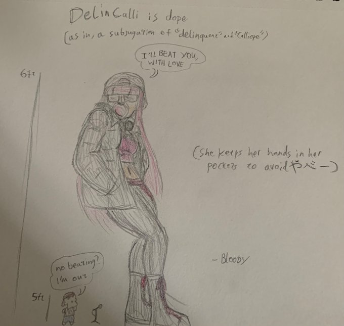 Been a long week, looks to be another but glad to have a new Calli thing. Hope my mom understands I’m too broke for her birthday. Have not kept up on drawing lately, practice for my digital piece this weekend I guess #callillust