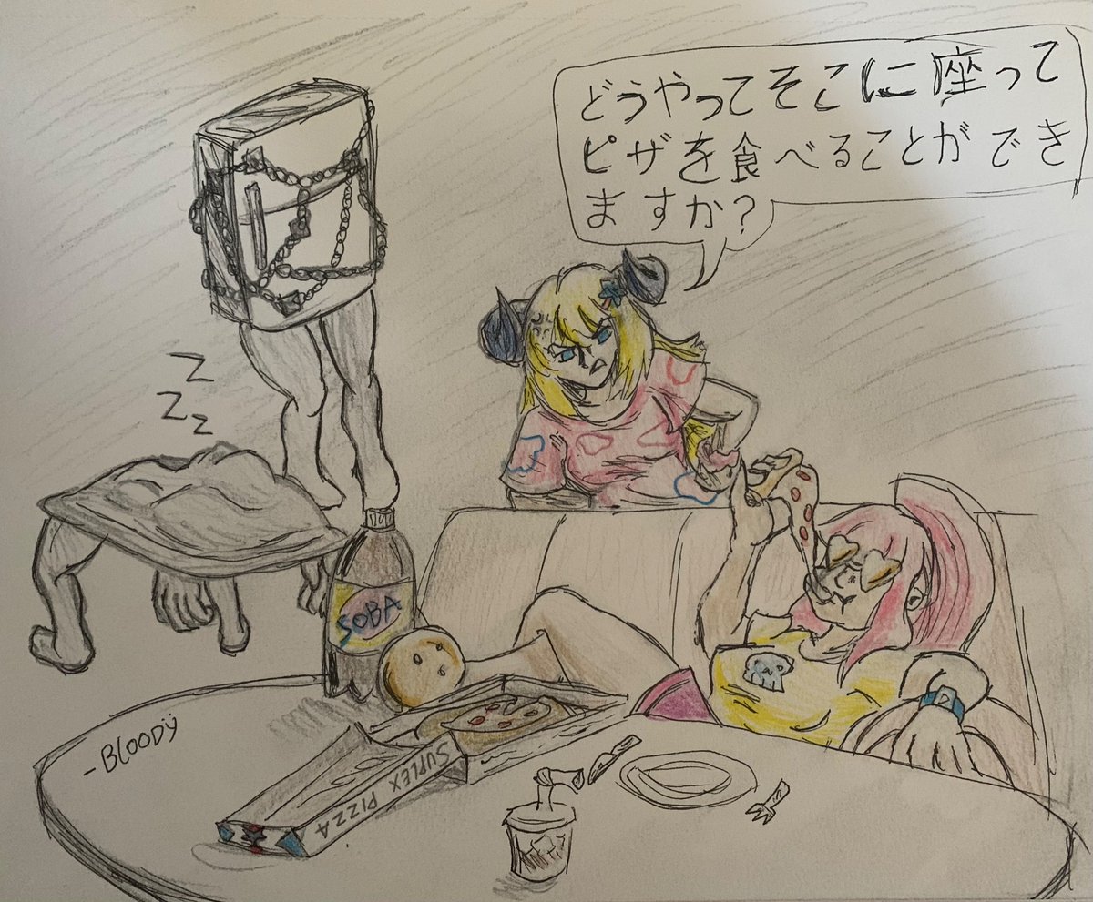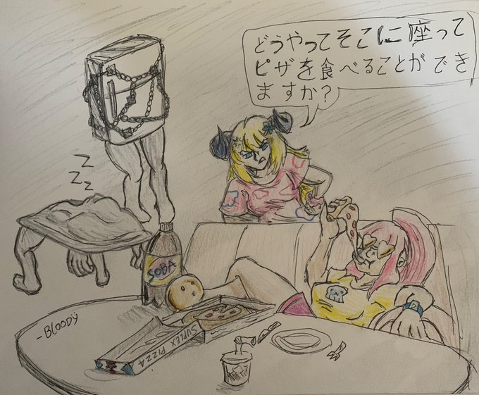 Anytime I see pizza I’m always reminded of one scene from Silent Hill 2 Admittedly have not tried drawing Watame before and have only used the MV for reference #つのまきあーと #callillust