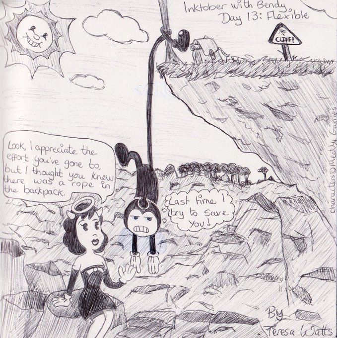 #Inktober with #Bendy Day 13: Flexible. Honestly, you try to help a gal out and she decides to critique your methods instead. ๐ #Inktober2020 #InktoberDay13