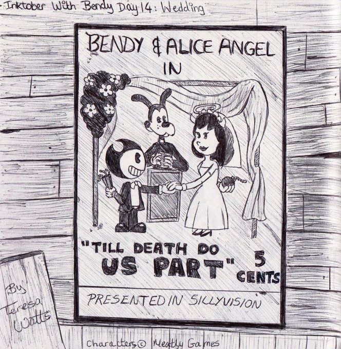 #Inktober with #Bendy Day 14: Wedding Looks like this marriage is going to go off with a bang! #Inktober2020 #Inktober2020day14