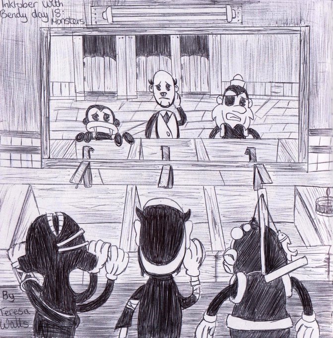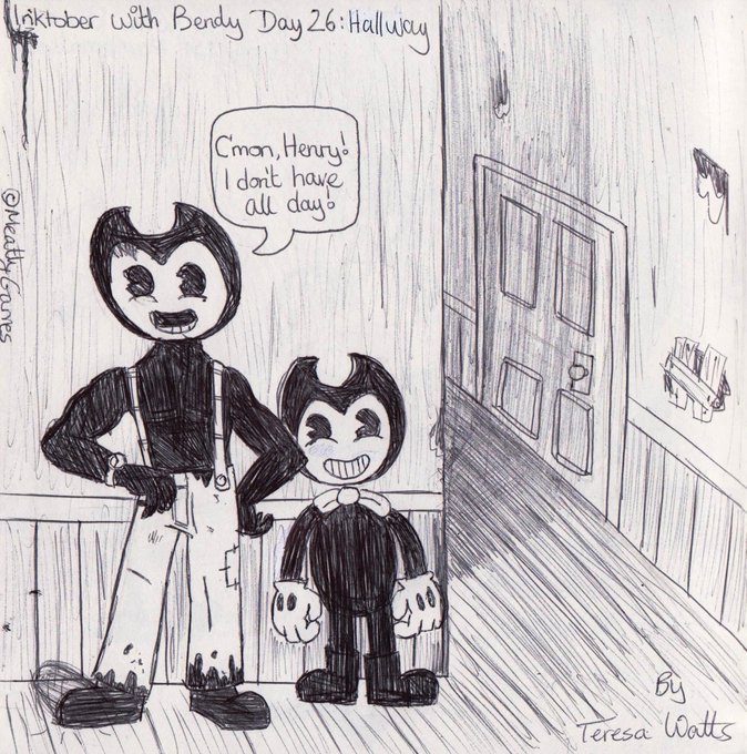 #Inktober With #Bendy Day 26: Hallway. Maybe Sammy needed to find better things to do in episode 1 than just waiting around corners to jump-scare us with Bendy cutouts. #Inktober2020 #InktoberDay26
