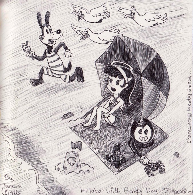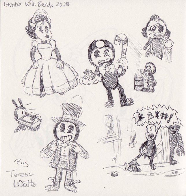 #Inktober with #Bendy Day 10: Best Friends. I'm sure Charley is smiling on the inside. #Inktober2020Day10 #Inktober2020 #BendyAndTheInkMachine