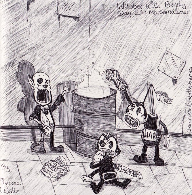#Inktober with #Bendy Day 25: Marshmallow Because that can fire is the perfect place to toast some marshmallows. #Inktober2020 #InktoberDay25