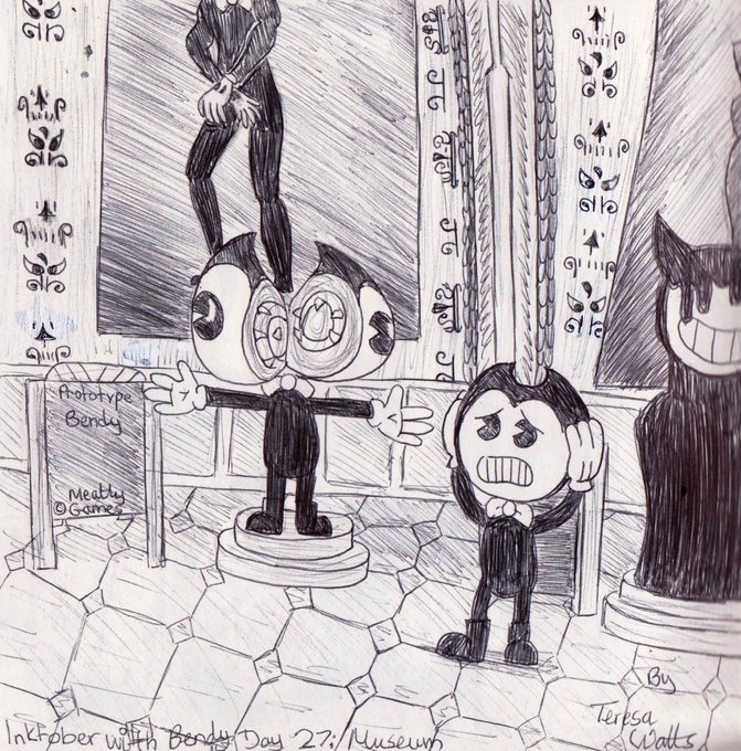 #Inktober With #Bendy Day 27: Museum. Don't worry, I don't think your head does that any more, Bendy. #Inktober2020 #InktoberDay27