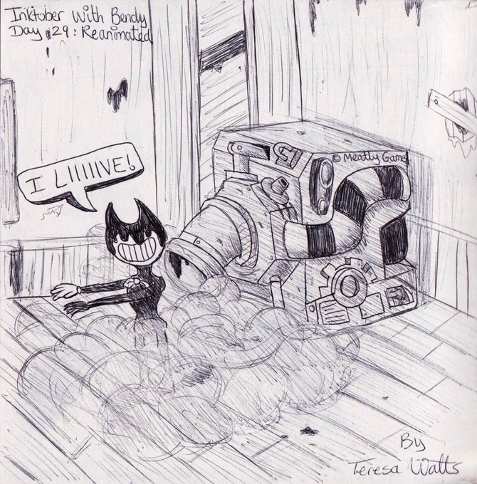 #Inktober With #Bendy Who's that coming out of the pipe? Why it's Bendy! #Inktober2020 #InktoberDay29