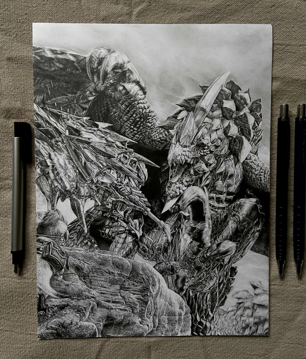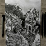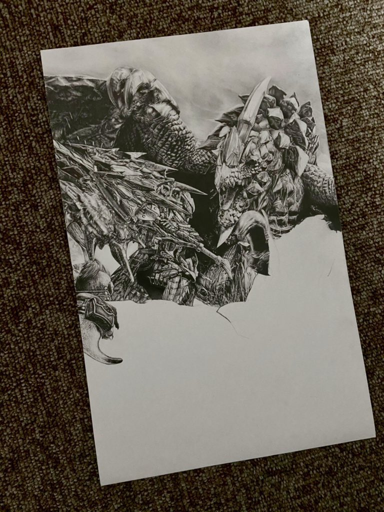 半年以上かけてシャーペンでモンスターハンター4Gのパッケージ描きました!! #モンハン #モンスターハンター #模写