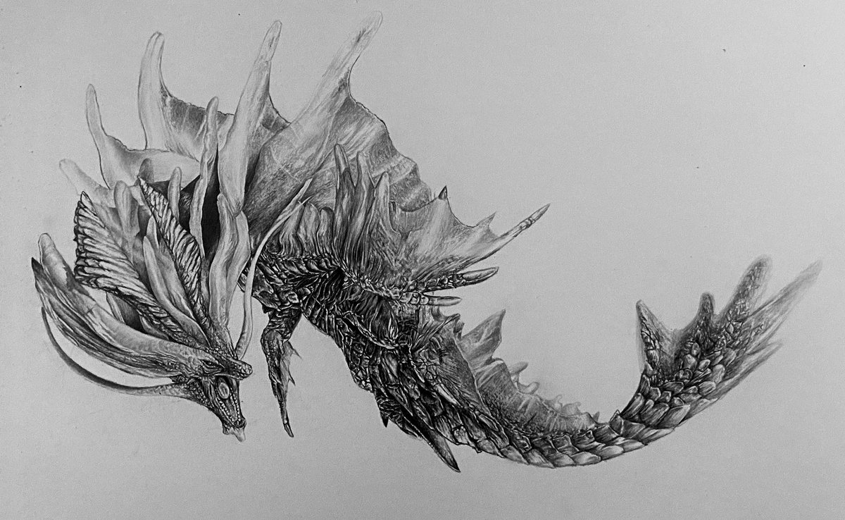 ジンオウガの次はアマツ!! シャーペンで大体15時間くらいで描きました^_^ いいね、RTしていただけたら嬉しいです!