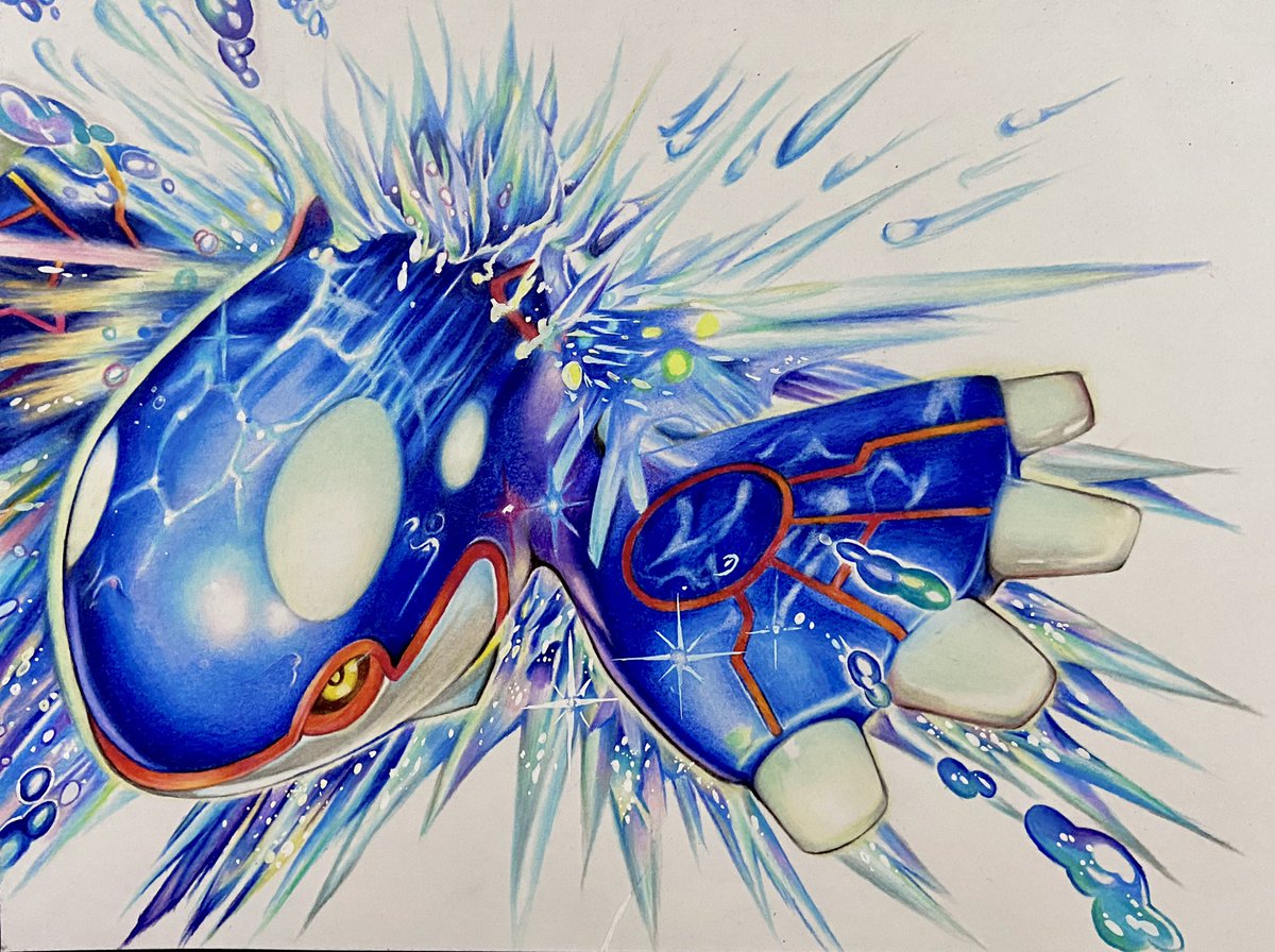 色鉛筆でポケモンのカイオーガ 描きました! #色鉛筆 #ポケモン #模写