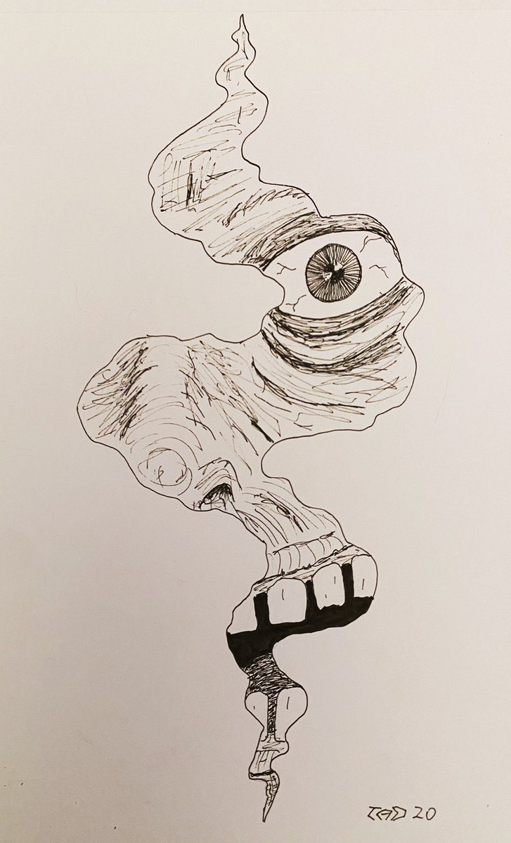 Day 18 of Inktober, using the Weirdtober prompt “Too many teeth.” …and yet another scary face… #Inktober #Inktober2021 #weirdtober
