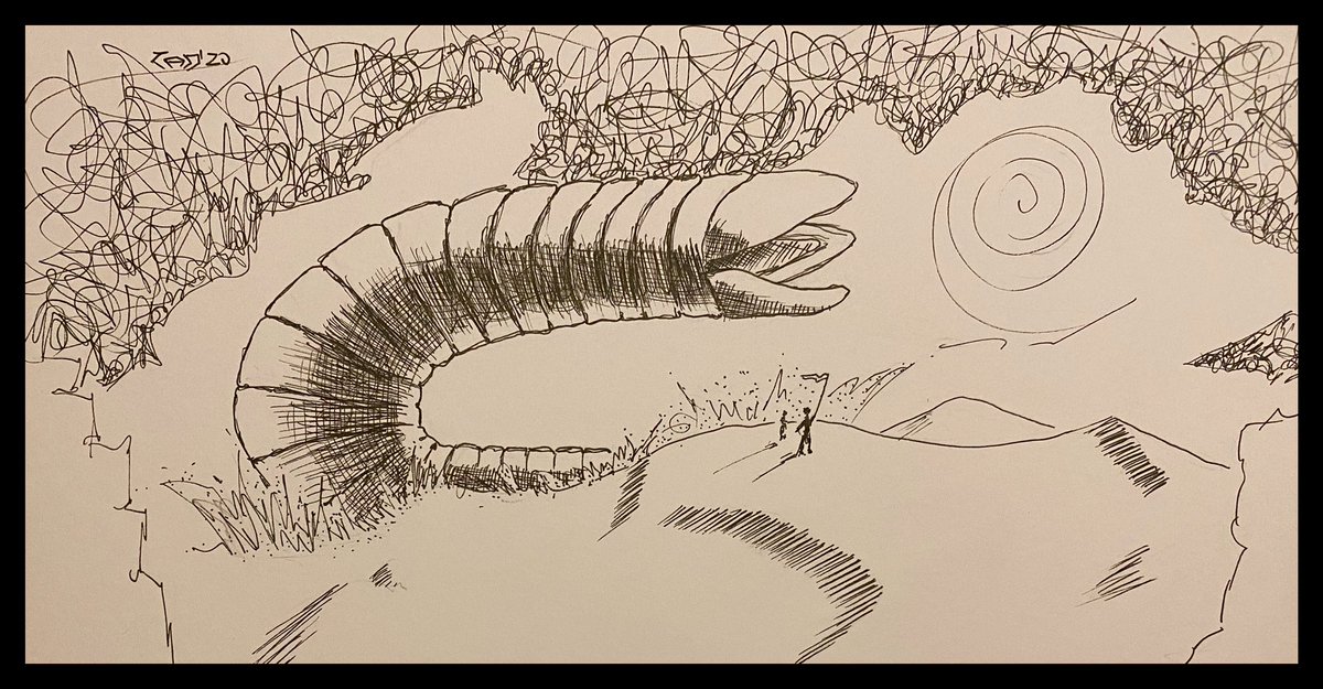 Day 14 of Inktober, using the Weirdtober prompt “Maddening Music.” I went through a stage of drawing hippies in my school days - the message of this guy is a little more sinister than the usual “peace and love.” #Inktober #Inktober2021 #weirdtober #HPLovecraft #Cthulhu #darksign