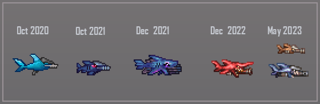 47 354 after noticing my first sprite was a megashark resprite, decided to make a timeline ┃#Terraria #pixelart #ドット絵 23/05/25 00:35