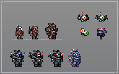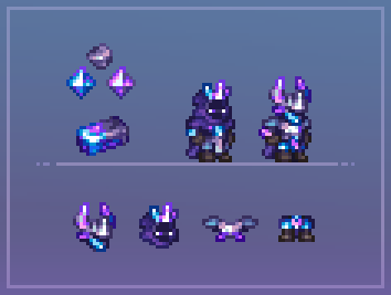 Some of the exo armor related stuff i have worked on recently, the exo armor itself and its forms are still a WIP ┃#Terraria #pixelart #ドット絵