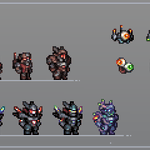 84 825 Some of the exo armor related stuff i have worked on recently, the exo armor itself and its forms are still a WIP ┃#Terraria #pixelart #ドット絵 23/06/08 00:35