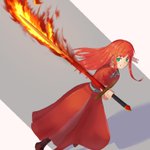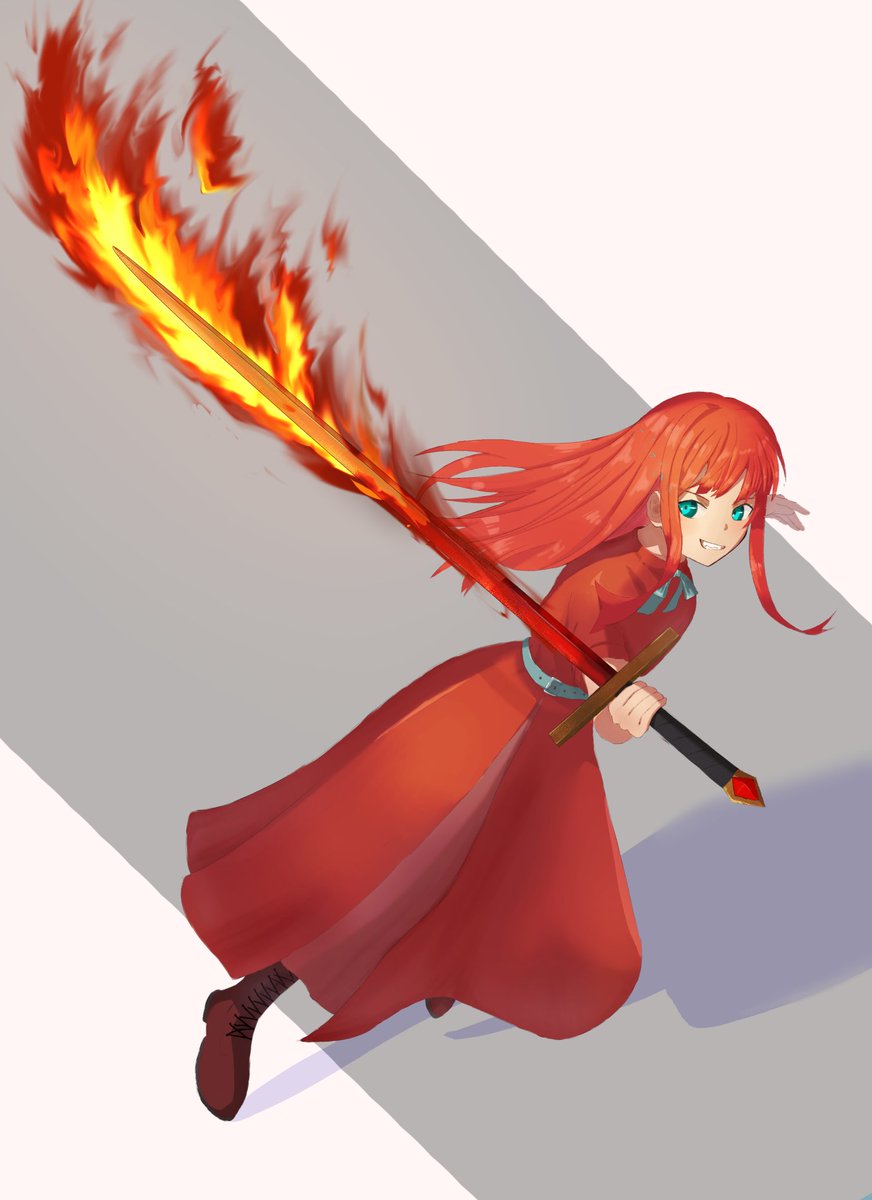 赤毛ロング剣士ちゃん 背景に炎描いてみた #イラスト #イラスト好きな人と繋がりたい #イラスト練習中