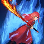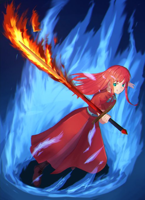 3 24 赤毛ロング剣士ちゃん 背景に炎描いてみた #イラスト #イラスト好きな人と繋がりたい #イラスト練習中 23/03/21 12:46