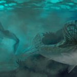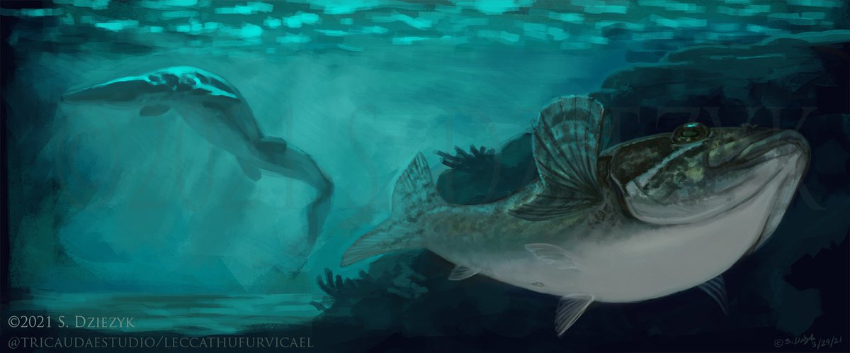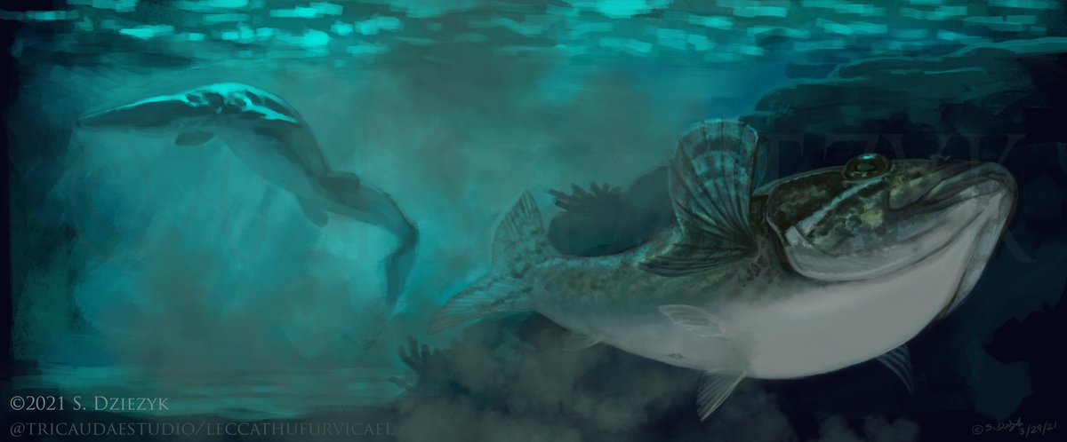 Here is a variant where sediment is kicked up by the Sorbinicharax. #MosasaurWeek #fish #sciart #paleoart #illustration #digital #art #wildlife