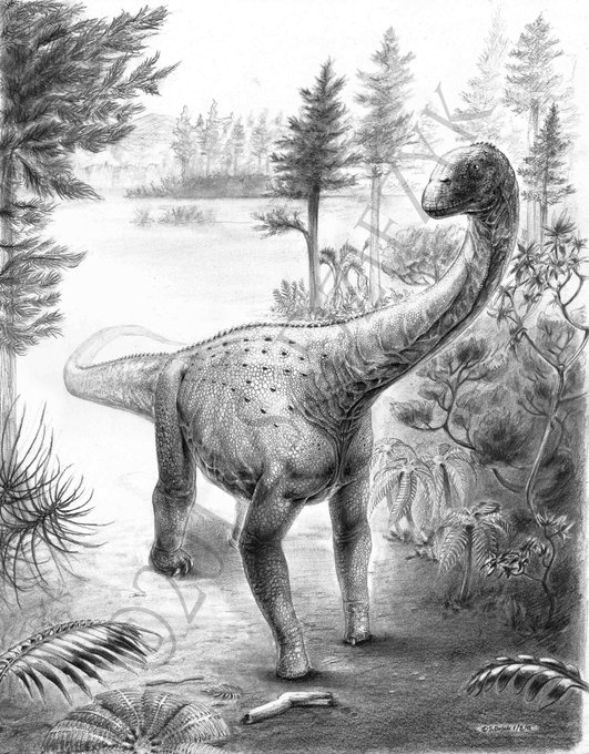 The iguanodont Mantellisaurus atherfieldensis may have existed temporally and locationally close to its more famous relative, ranging from 145-113 mya in western Europe. Graphite drawing, updated from a 2019 sketch. Art @ThreeTailArt #paleoart #sciart #fossilfriday