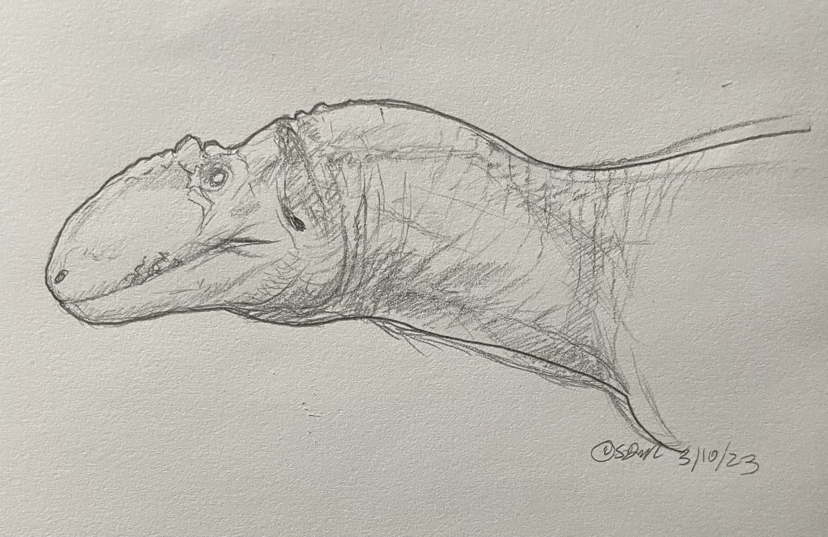 #MorrisonFormationWeek I'm sure you are tired of seeing two of the most famous apex predators of the Jurassic, Allosaurus fragilimus and Ceratosaurus nasicornis, but I have a small consolation prize - Tanycolagreus topwilsoni! #dinosaurs #sciart #drawing #animals #paleoart