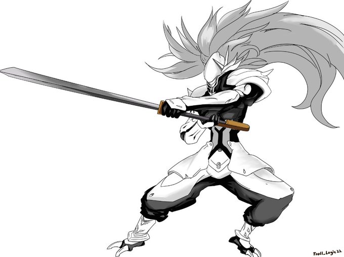 "Twin Guardians: Mourning Shore!" Jubei's bladed calligraphy #格ゲーキャラ描こうぜ #ブレイブルー #BLAZBLUE #Jubei #Mitsuyoshi pixiv.net/en/artworks/99…