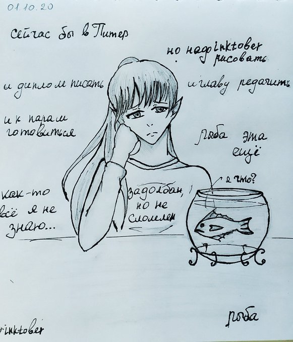 1. Рыба #Inktober #inktober2020 #InktoberDay1 Рисую себя и мем с рыбой, потому что не мем, а жизнь