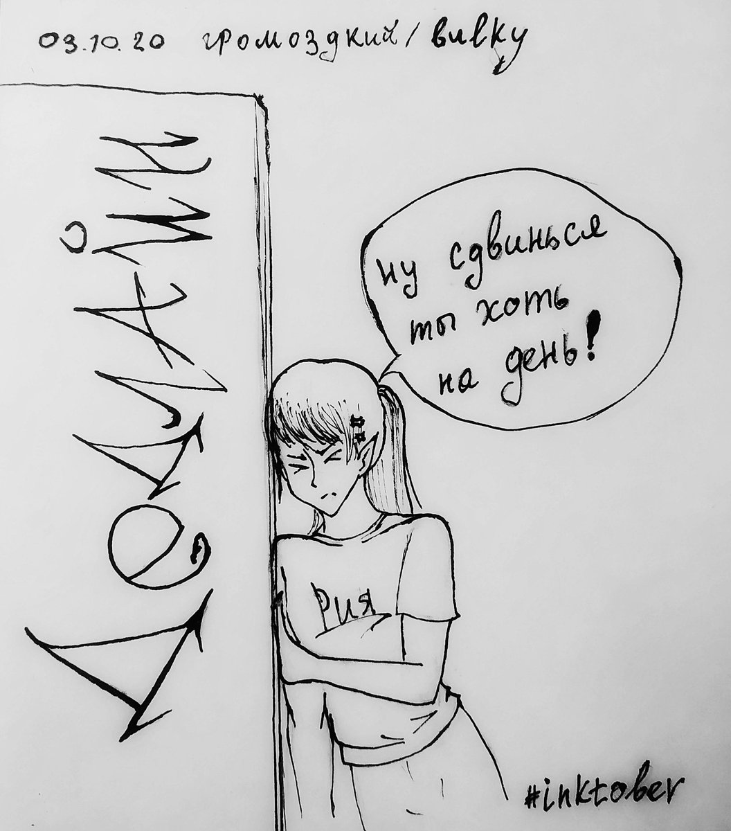 3. Громоздкий #Inktober #inktober2020day3 #inktober2020 Что-то громоздкое? Неподъëмное? Занимающее всë место? Конечно же это дедлайн! Кто о чëм, а Рия о дедлайнах...