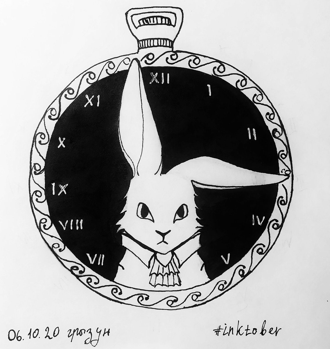 6. Грызун Сама немного чувствую себя Белым кроликом в последнее время, потому что "Я опаздываю! Я опаздываю!!!" #inktober2020 #inktober2020day6