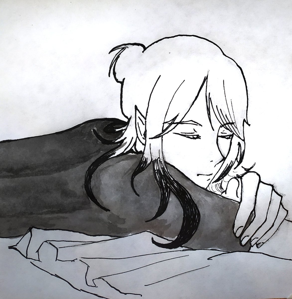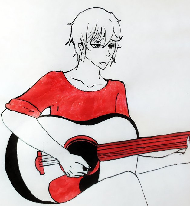 27. Музыка Продолжаю тему мальчики мои мальчики. Гг моего ориджа, например. Нигде не приписывала, но он умеет играть на гитаре пусть и не на очень высоком уровне. Ещë он точно умеет петь, но надо убиться, чтобы заставить его петь на публику #inktober2020 #inktober2020day27