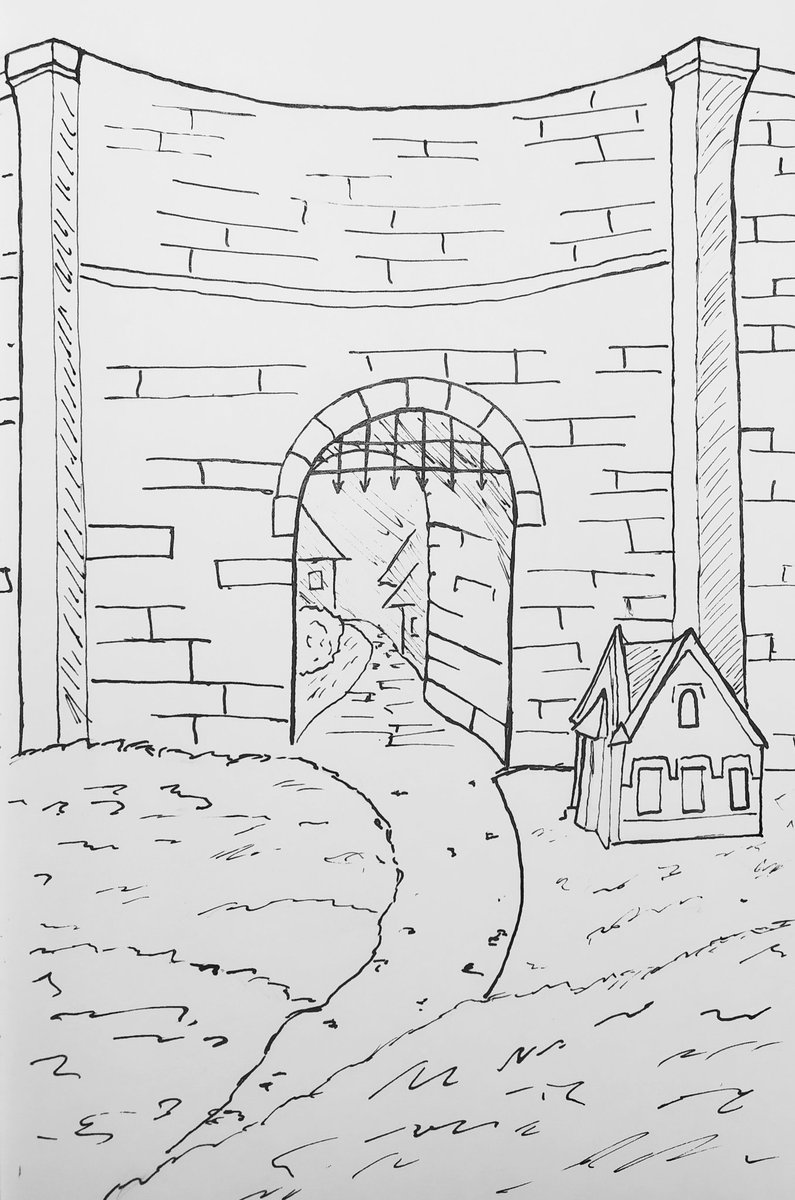 15. Застава Ну, собственно, крепостные ворота из одной там моей истории. Хотя в тексте они всë же повыше) #inktober2020 #Inktober #inktober2020day15