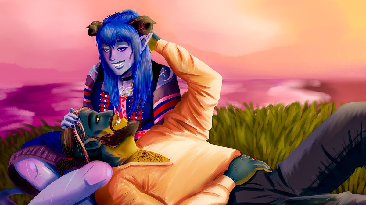 "I want to come out of this and be able to go back to the sea and go back to Nicodranas and go back to where it's warm...." My first piece of 2021! And of course it's Fjord and Jester. I'm nothing if not predictable. #Criticalrole #criticalrolefanart
