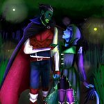 #Fjorester Week: Day 2 - Battle Couple & Class Reversal (with VM). Jester: Ranger, Fey Wanderer || Rogue, Swashbuckler Fjord: Barbarian, Storm Herald || Fighter, Echo Knight #criticalrolefanart