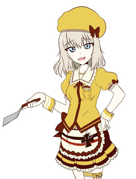 お題「逸見エリカ」(1.5ドロ) ココス道黒森峰店からヘルプで別店舗のキッチンに入っていたところ、西住妹が客に来たと聞いて、わざわざ席まで出てきたエリカ。 「副コック長…? ああ、"元"でしたね。」 #ガルパン版深夜のお絵描き60分一本勝負 #ガルパン版深夜のお絵描き60分一本勝負_20180121