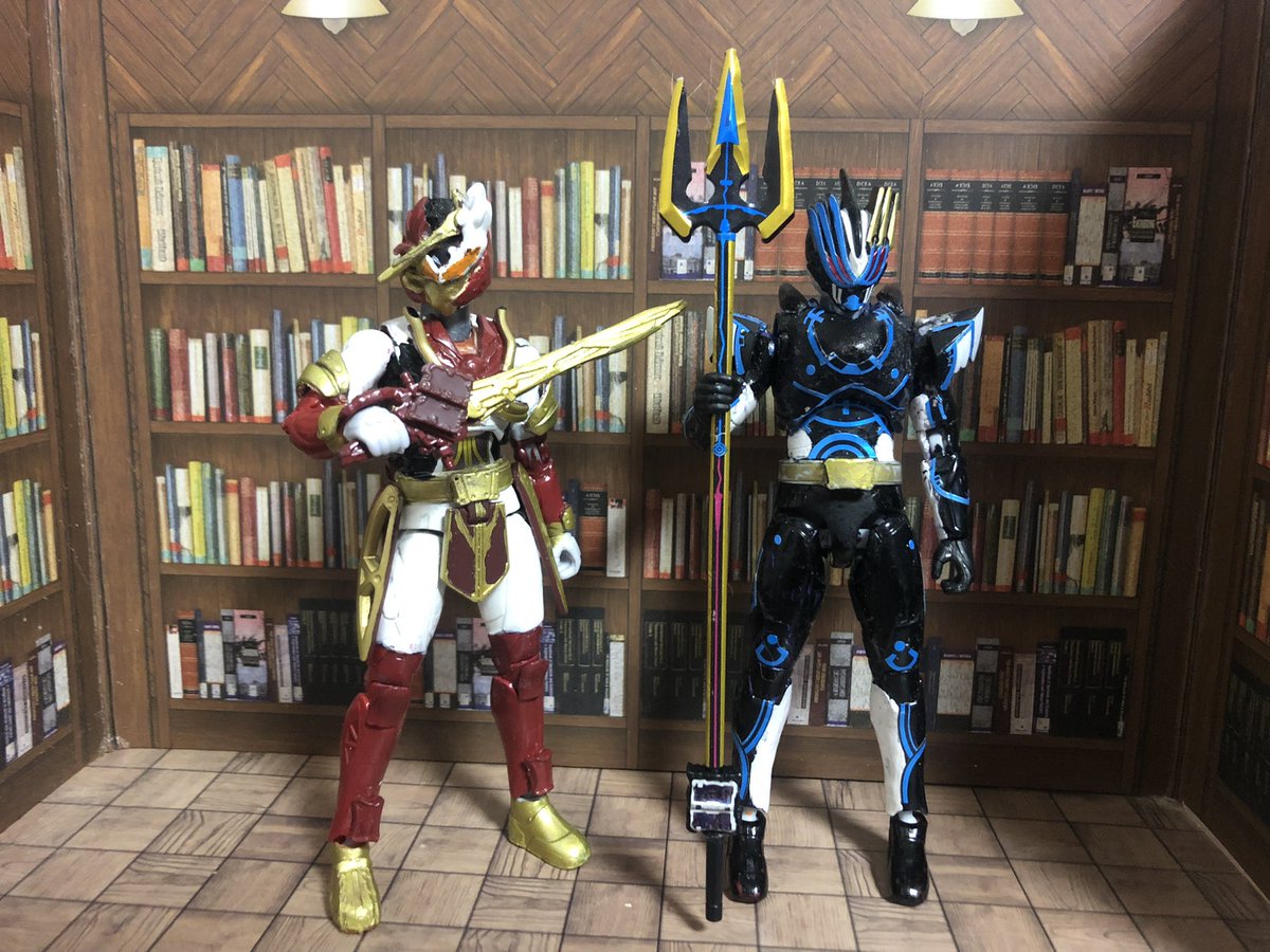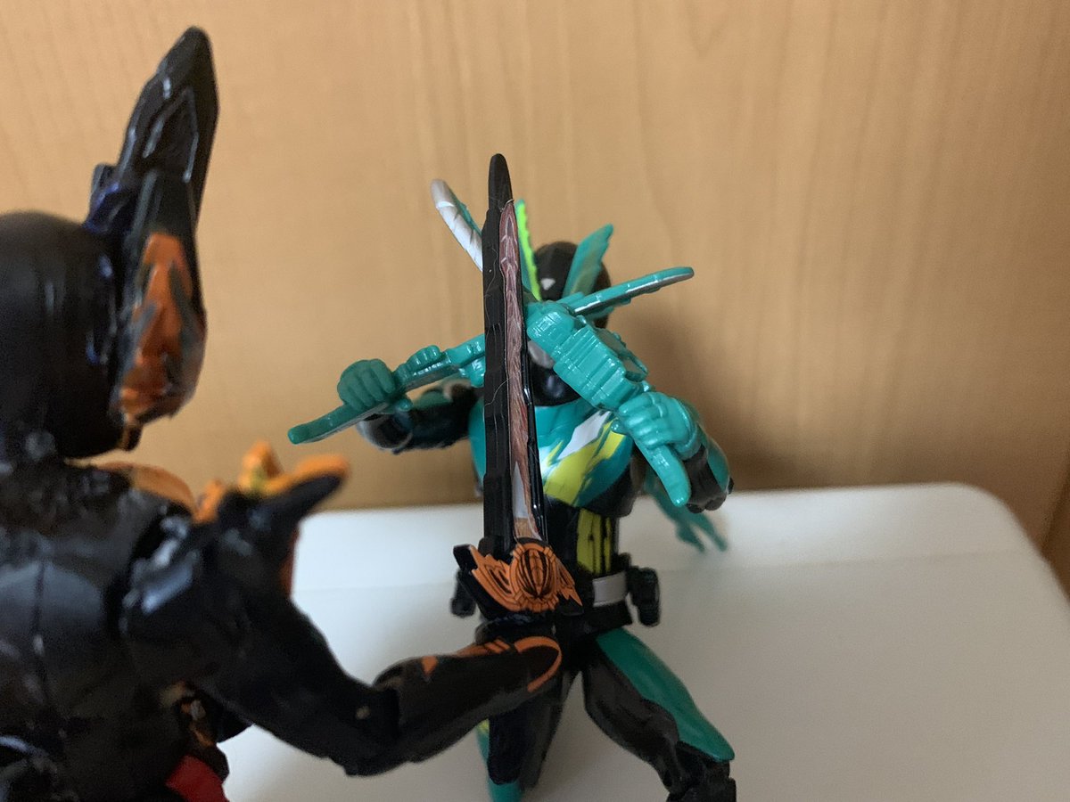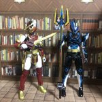 RKF(ほぼブレイズ)と装動を改造してファルシオンを作りました。最終回までにはどころか3日で出来てしまった。どうしても剣斬と一緒にブンドドしたかったです…さぁあと2体(ひとつは手すらつけてない) #ニチアサフィギュア改造部