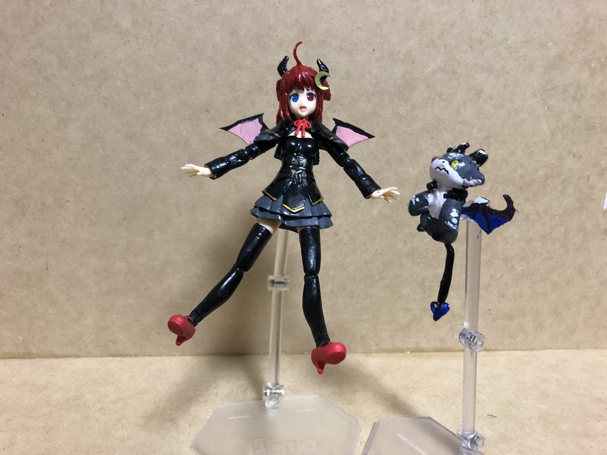完成 #にじさんじ可動フィギュア化計画 No.1、2 夢月ロア&でびでび・でびる ちょっと衣装にオリジナリティ入ってるけどだいたいよし。勿論可動フィギュアだから動きます。今後もにじさんじシリーズは続けていく予定です。 #ロアート ? #でびるさまにささげるえ ?