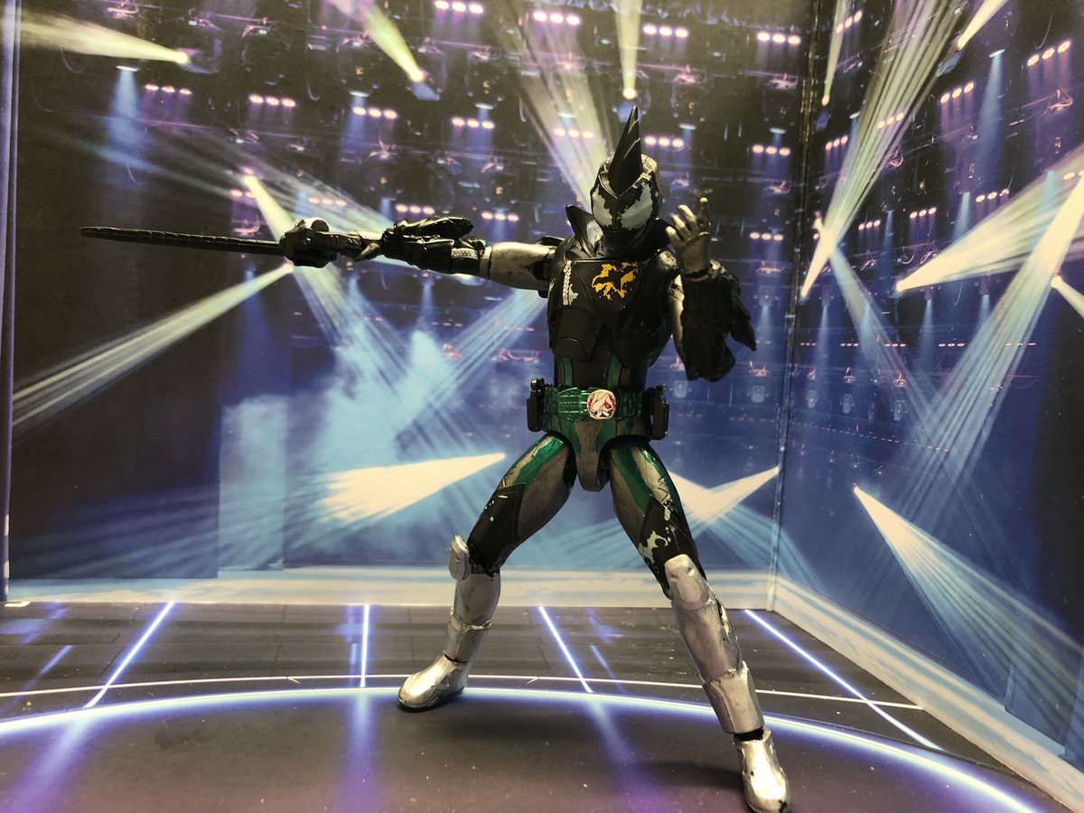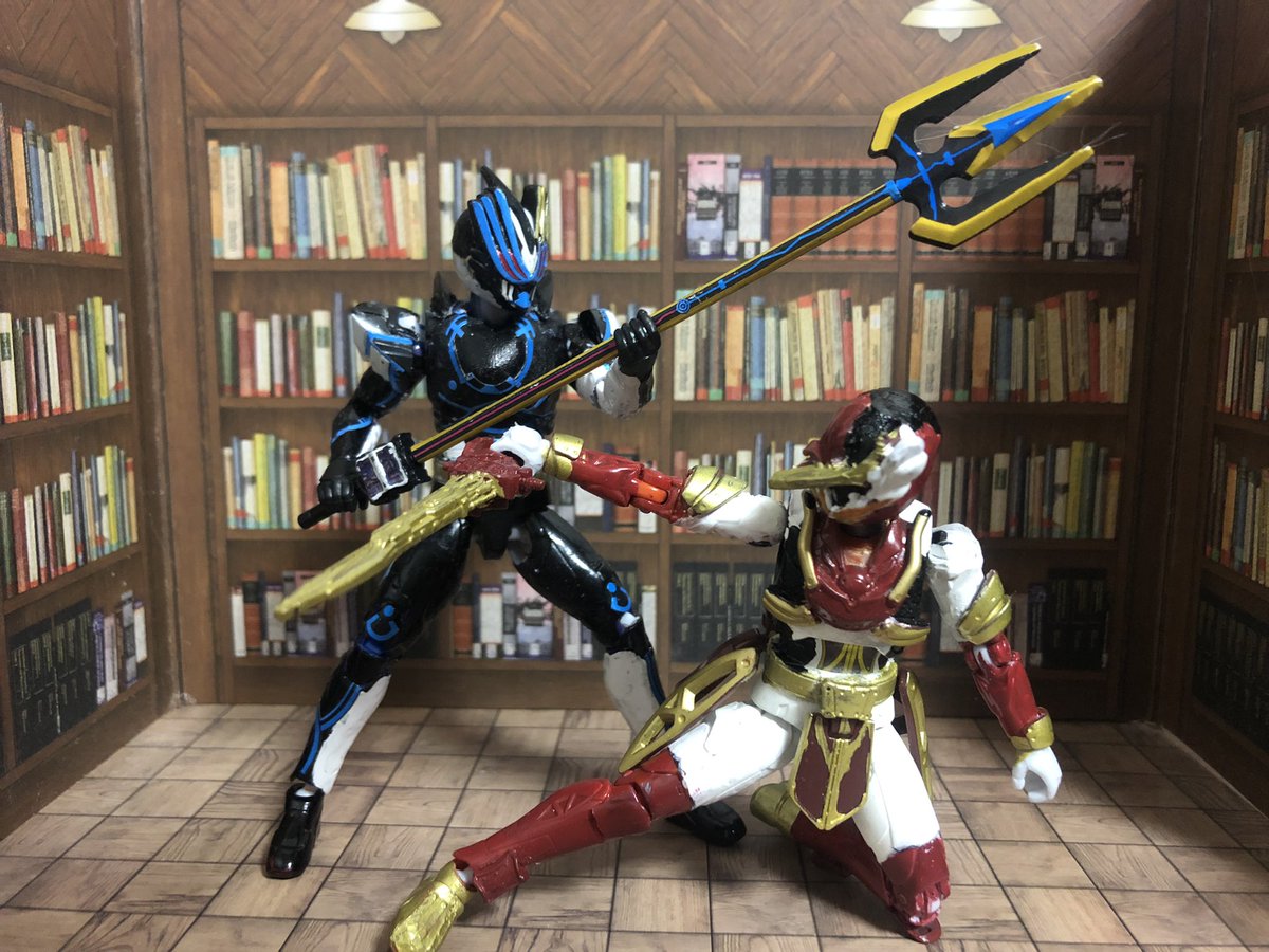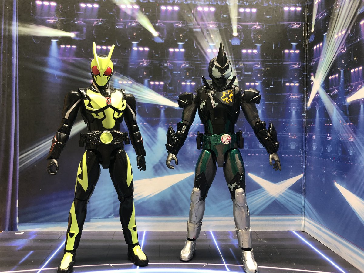 装動とRKFゼロワンを改造して仮面ライダーライブ作りました。2枚目は初登場回にやってたポーズのつもり。3枚目は比較。コレで最初の3人+aができた。早くジャンヌとバリッドレックスの装動が欲しい。 #ニチアサフィギュア改造部