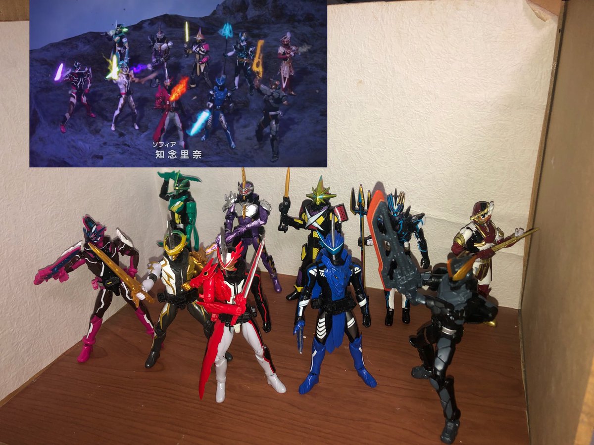 装動×RKFのバルカンとバルキリーで仮面ライダーサーベラと仮面ライダーデュランダル作りました。デュランダルはとっくにできてたけど一緒に出したかったので!3枚目は比較。コレで十剣士全員揃ったという事でOPのアレ(4枚目)やりました。 #ニチアサフィギュア改造部