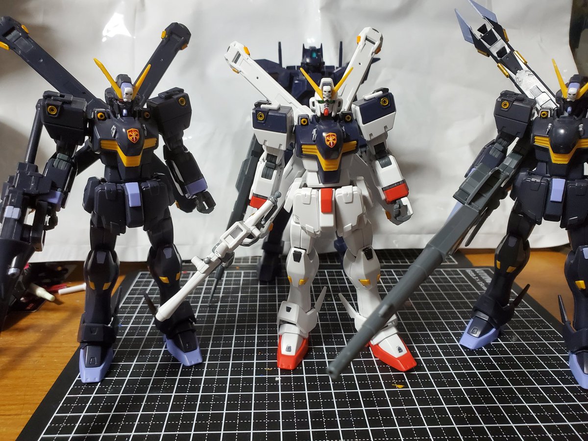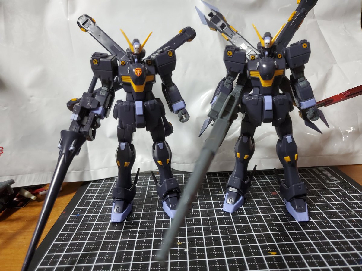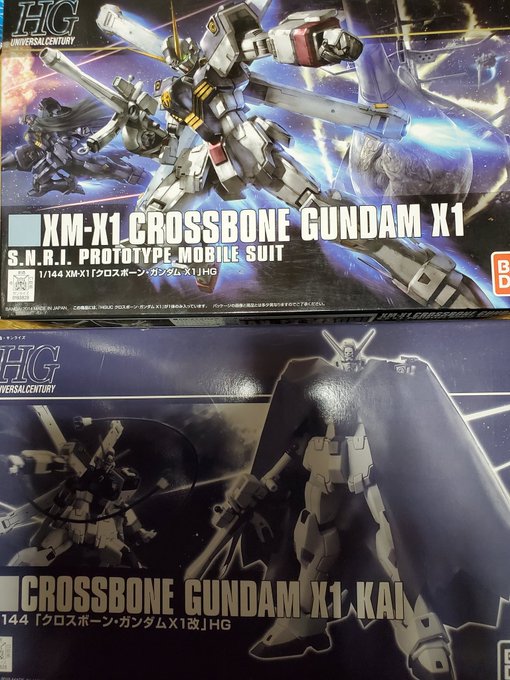 クロスボーンガンダムX2、X2改完成 年を跨いでの完成となってしまった まだ残っていますがクロスボーン祭り終了 いずれまた… ついでにGエグゼスを黒仕様で制作 一緒に並べられると思ったけど案外デカイのねw AGE系初制作‼️ #ガンプラの画像を貼るとRTされると聞いて #ガンプラ好きと繋がりたい