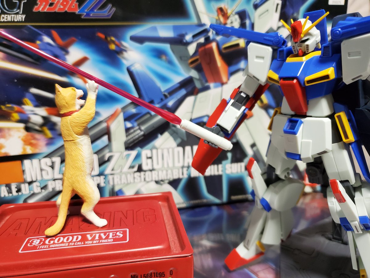 滞っていたZZ完成 スペック上ではシナンジュよりパワーあるっていうんだからどんだけバケモンだったんだか😅 ネタ画像をw 「隕石斬り‼️ 止められた⁉️ねこ🙀に❓️」 #ガンプラの画像貼るとRTされると聞いて #ガンプラ好きな人と繋がりたい #ガンプラはどんな自由な発想で作ってもいいんだ