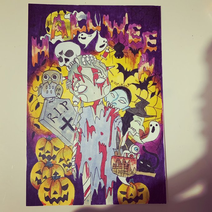 もうすぐハロウィンですねぇ🎃👻🧟♀️ これは3年前に描いたものです。 中々のグロかわです。 #イラスト #コピック #ハロウィン