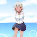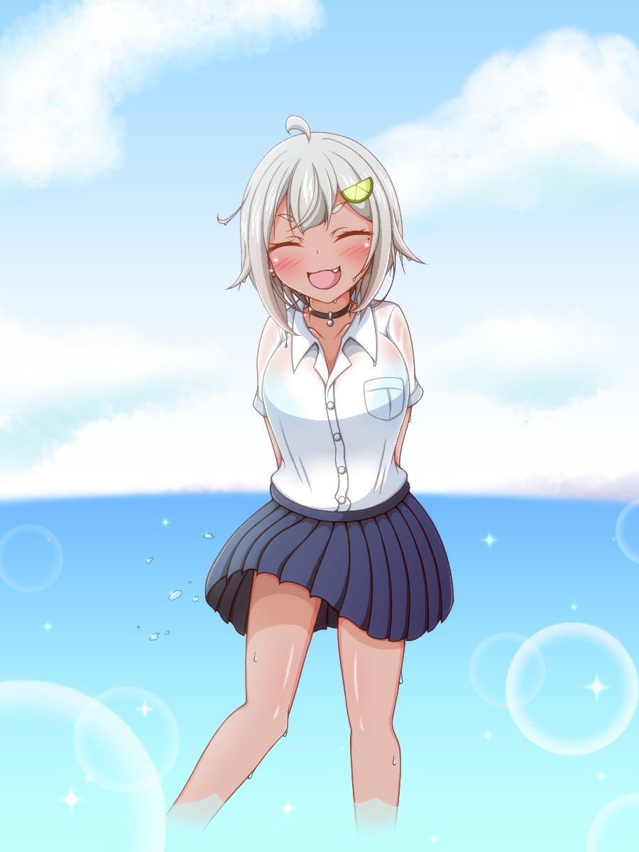 学校帰りに海に寄って、脚だけでも海に入って涼しくなろうと試みるも、だんだんと楽しくなってきちゃった町長の図 背景下手なので心の瞳で見てください✨🏖️🌊 #舞鈴クラフト