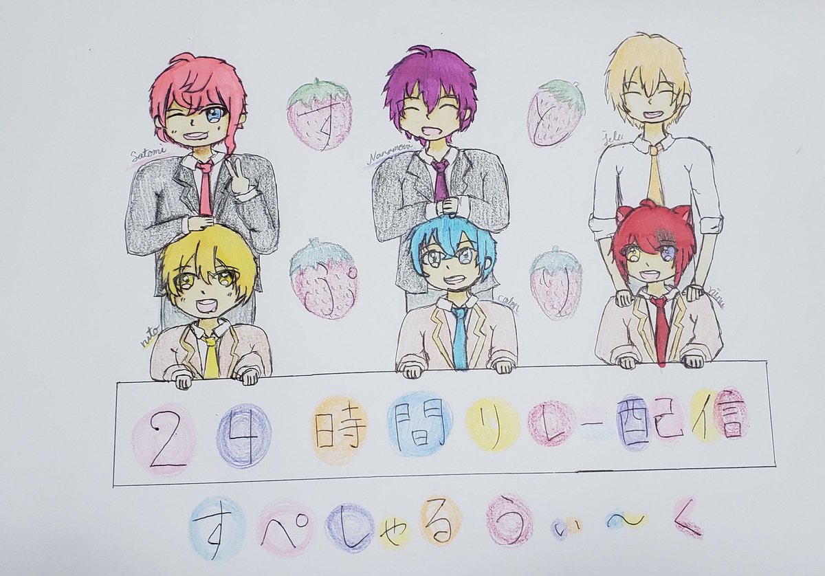 おつさとです! アナログなのですが、さとめろで どうしても描きたくて描きました! リップロールにたくさんのセリフと外郎売 聞かせて頂きありがとうございました。声を使う部活をやっていたのでとても懐かしかったです。 夜遅くまでありがとうございました。 #すとぷりギャラリー #さとみくん