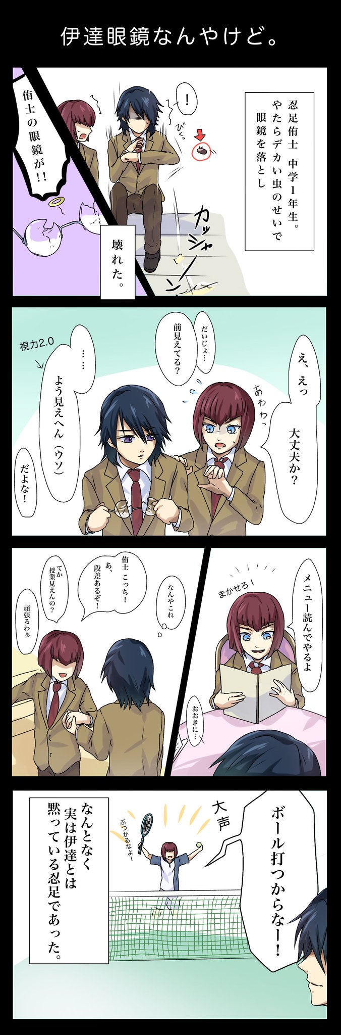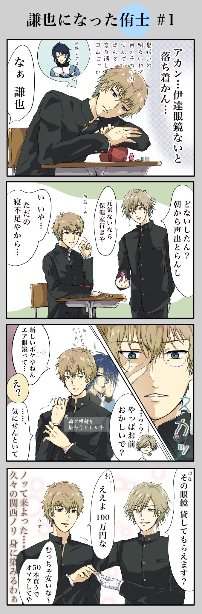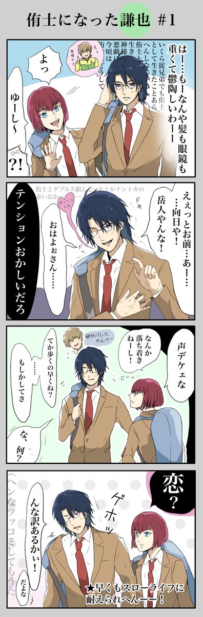 4コマ 謙也と入れ替わってしまった侑士の試練❗️ ※謎設定