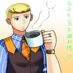コーディー落書き。 コーヒーブレイク中。 皆さん今日も一日お疲れ様でした。コーヒーに限らず、好きな飲み物でリラックスして下さい。(指輪は私の趣味です。)