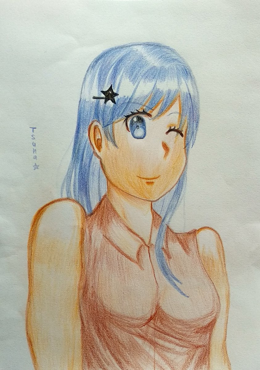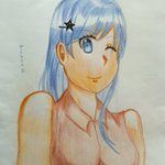 たまに色鉛筆を使います😁✍️ #オリキャラ #イラスト #オリジナルイラスト #アナログ #落描き #色鉛筆 #女の子 #青髪