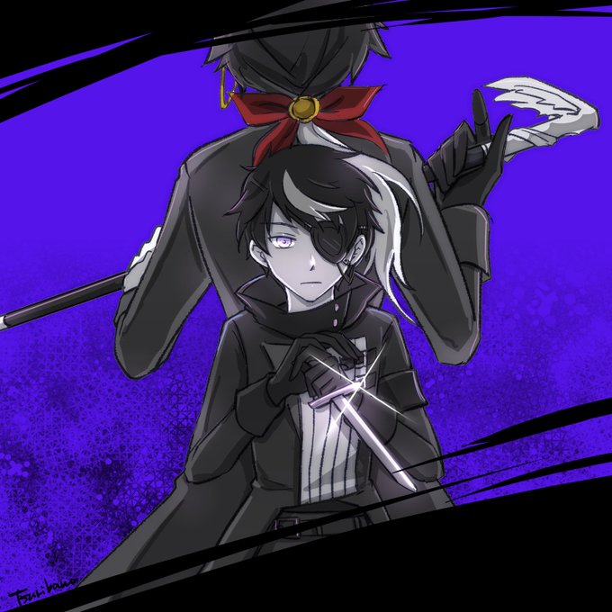 19 108 グッズ絵見てたら描きたくなった裁判官と鴆くん 鴆🔮は裁📷苦手そうですよね(裁鴆/写占) 23/06/22 23:20