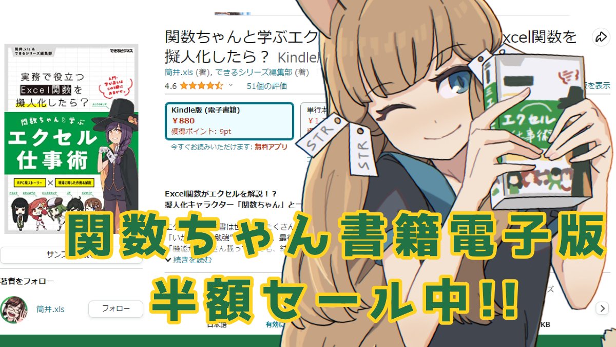私とインプレス編集部様の共著『関数ちゃんと学ぶエクセル仕事術』の電子版がAmazonで半額セール中です! この機会に是非! ¥1,760 → ¥880 1章まで(44ページ)試し読み book.impress.co.jp/items/kansu-ch… お詫びと訂正 book.impress.co.jp/books/11221011… Amazon amzn.to/3NDMj8S