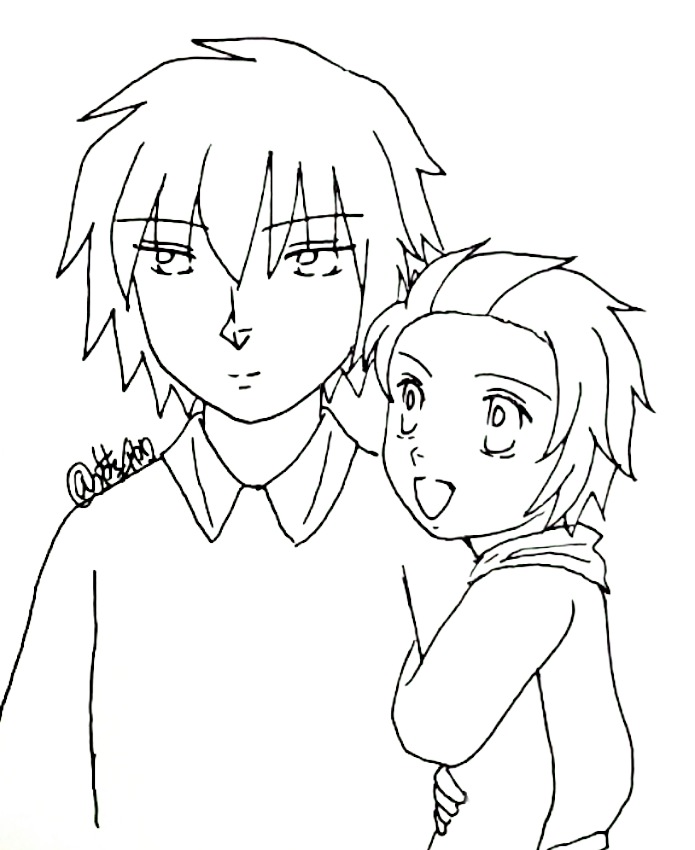 #義炭によるぎゆさん誕生祭2022 間に合わなかったので、線画で済みません。 「ぎうさ、たんじょび、おめめとー」 「ありがとう。うれしいよ。」