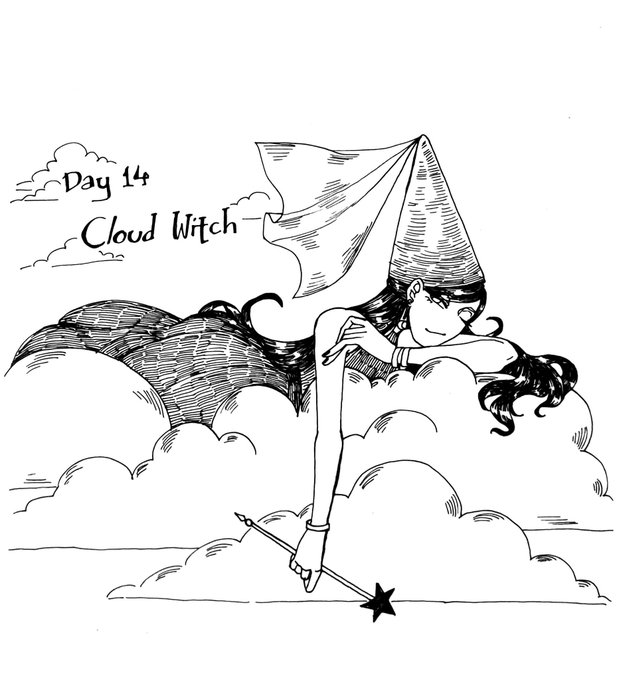 Witchtober Day 14 "Cloud Witch" #witchtober2021 #witchtober #witchart #inktober #inktober2021 #art #illustration