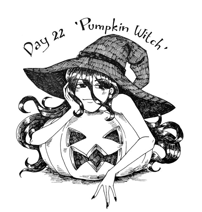 Witchtober Day 22 "Pumpkin Witch" #witchtober2021 #witchtober #witchart #inktober #inktober2021 #art #illustration