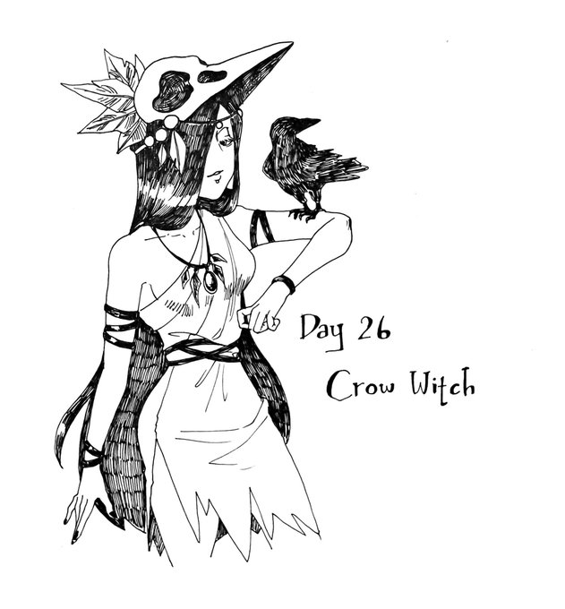 Witchtober Day 26 "Crow Witch" #witchtober2021 #witchtober #witchart #inktober #inktober2021 #art #illustration